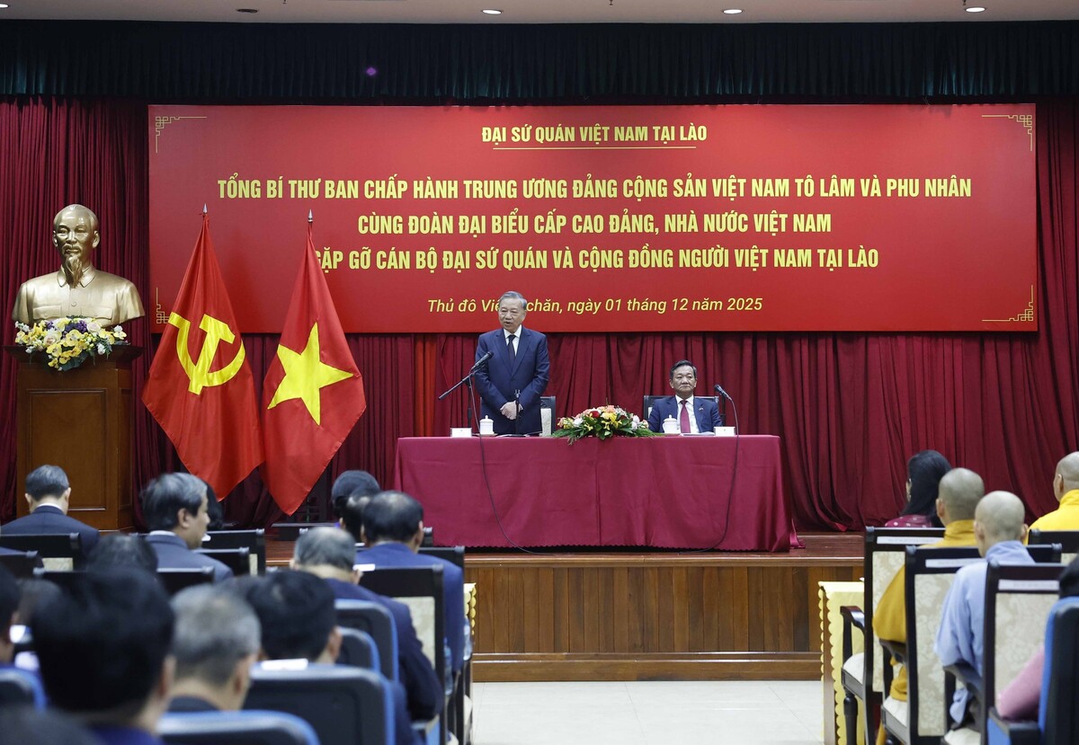Phát biểu tại buổi gặp gỡ, Tổng Bí thư Tô Lâm cho biết, chuyến thăm cấp Nhà nước tới Lào lần này của Đoàn đại biểu cấp cao Việt Nam diễn ra đúng vào dịp nước Lào kỷ niệm 50 năm Quốc khánh - một dấu mốc trọng đại trong lịch sử phát triển của đất nước Triệu Voi.