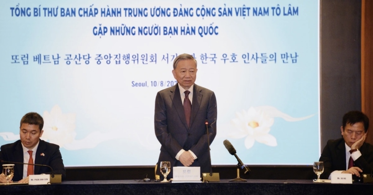 Tại cuộc gặp, Tổng Bí thư Tô Lâm vui mừng gặp lại những người bạn thân thiết là những nhà ngoại giao, nhà hoạt động trong lĩnh vực văn hóa, thể thao, cảm ơn sự ủng hộ, đồng hành, thúc đẩy sự phát triển của quan hệ Việt Nam - Hàn Quốc. Tổng Bí thư Tô Lâm nhấn mạnh, trong sự phát triển của Việt Nam luôn có sự hỗ trợ của Hàn Quốc, với sự hợp tác trên các lĩnh vực kinh tế, văn hóa, xã hội, giao lưu nhân dân, bày tỏ mong muốn, hai nước sẽ tăng cường hợp tác, đẩy mạnh liên kết giữa hai nền kinh tế.