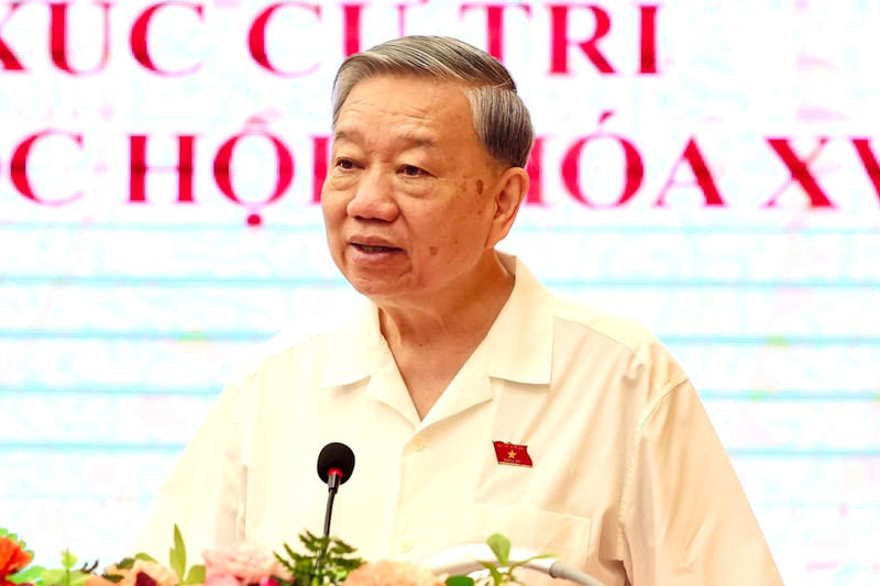 Tổng Bí thư Tô Lâm phát biểu tại buổi tiếp xúc cử tri. (Ảnh: Viết Thành)