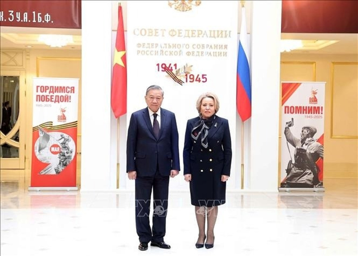 Chủ tịch Valentina Matviyenko nhiệt liệt chào mừng Tổng Bí thư Tô Lâm và Đoàn đại biểu cấp cao Việt Nam sang thăm Liên bang Nga, đánh giá cao ý nghĩa quan trọng của chuyến thăm, nhất là trong bối cảnh hai nước kỷ niệm các sự kiện lịch sử trọng đại tại mỗi nước và trong quan hệ song phương, bao gồm 75 năm thiết lập quan hệ ngoại giao Việt Nam - Nga, 80 năm Ngày Chiến thắng trong Chiến tranh Vệ quốc vĩ đại, 50 năm Giải phóng miền Nam Việt Nam, thống nhất đất nước và 80 năm Ngày Quốc khánh Việt Nam.
