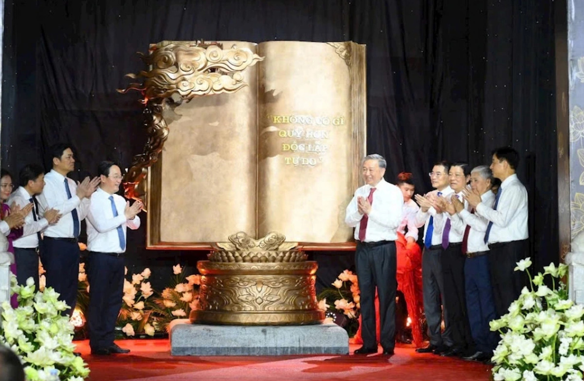 Dịp này, dưới sự chứng kiến của Tổng Bí thư Tô Lâm, tại Khu Di tích quốc gia đặc biệt Kim Liên diễn ra lễ ra mắt tác phẩm điêu khắc ánh sáng "Trang sử vàng" của nghệ nhân Bùi Văn Tự, tác phẩm điêu khắc ánh sáng có kích thước rất đặc biệt 1945mm chiều rộng; 2025mm chiều cao và 79 trang sách.