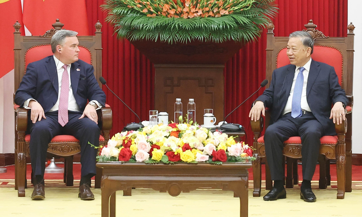 Tổng Bí thư Tô Lâm khẳng định Việt Nam coi trọng quan hệ với Hoa Kỳ, mong muốn quan hệ Đối tác Chiến lược Toàn diện giữa hai bên tiếp tục phát triển, trong đó hợp tác năng lượng là một trong những trọng tâm của quan hệ song phương, vì lợi ích của doanh nghiệp, nhân dân hai nước, vì hòa bình, ổn định và phát triển trong khu vực và trên thế giới.