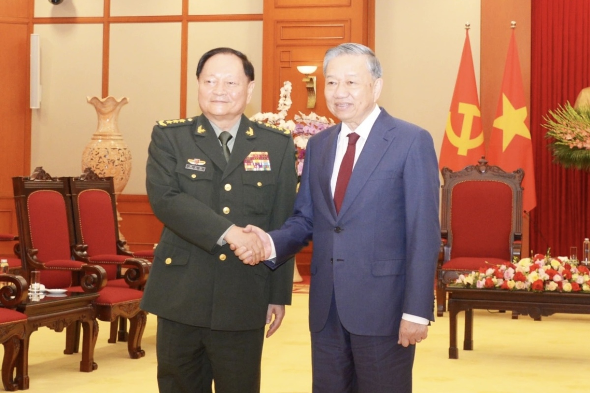 Tổng Bí thư, Bí thư Quân ủy Trung ương Tô Lâm tiếp Phó Chủ tịch Quân ủy Trung ương Trung Quốc.