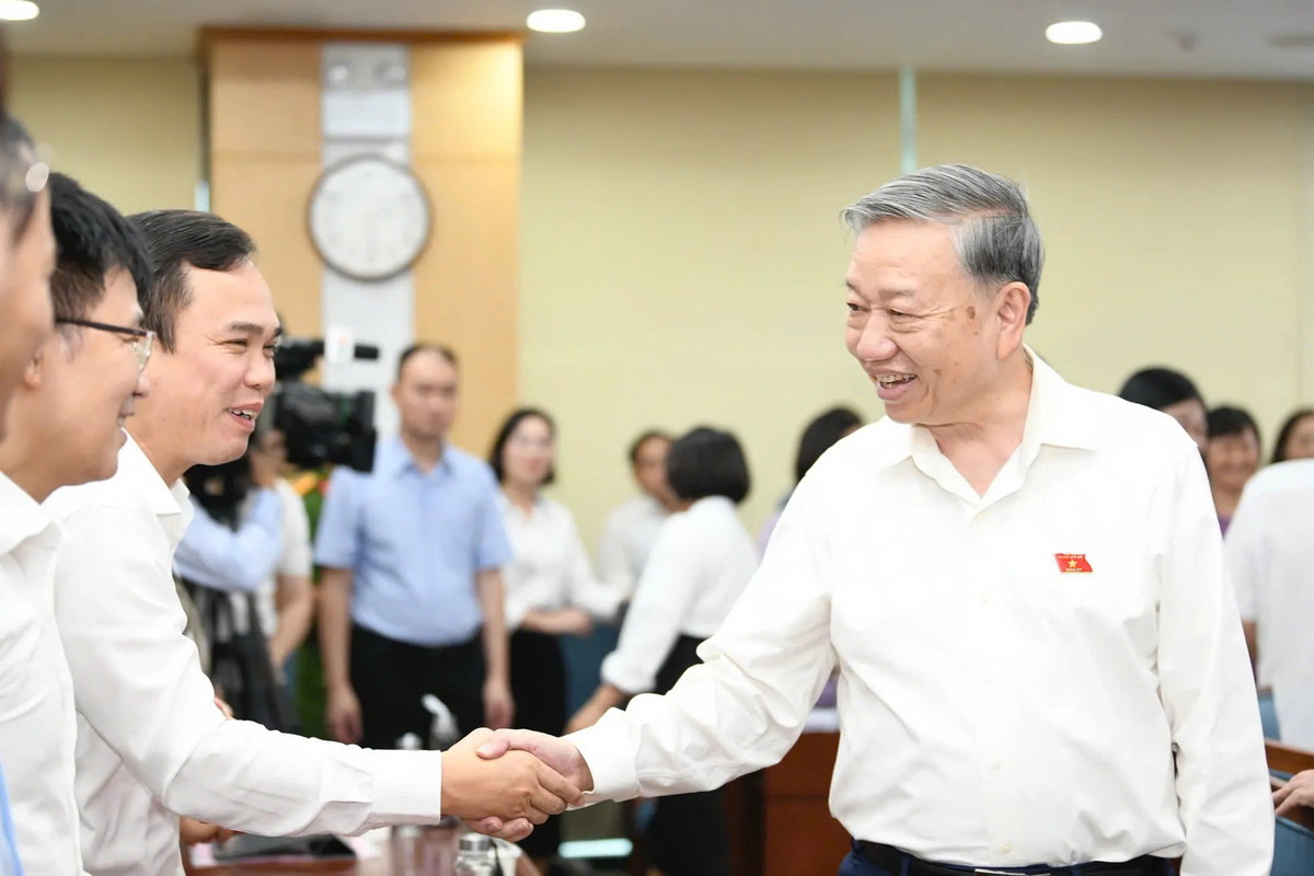 Tổng Bí thư Tô Lâm và các cử tri tại Hội nghị tiếp xúc cử tri. (Ảnh: Như Ý).