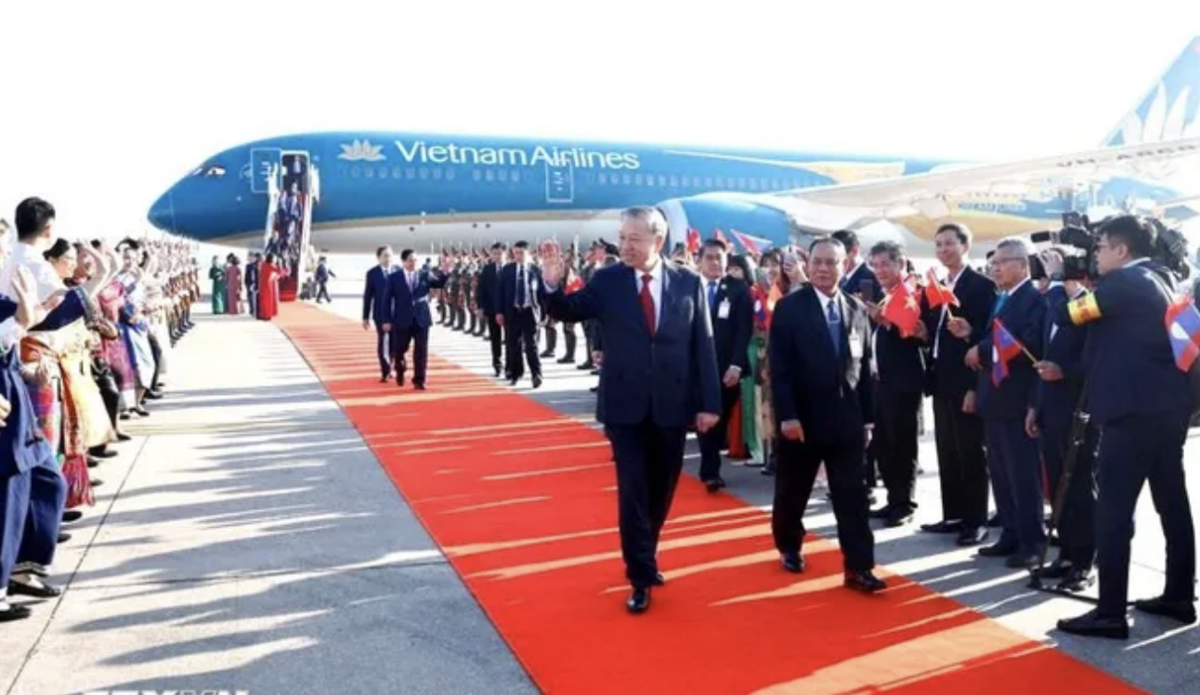 Tổng Bí thư Tô Lâm dẫn đầu Đoàn đại biểu cấp cao Việt Nam đến Thủ đô Vientiane, bắt đầu chuyến thăm cấp Nhà nước tới CHDCND Lào.