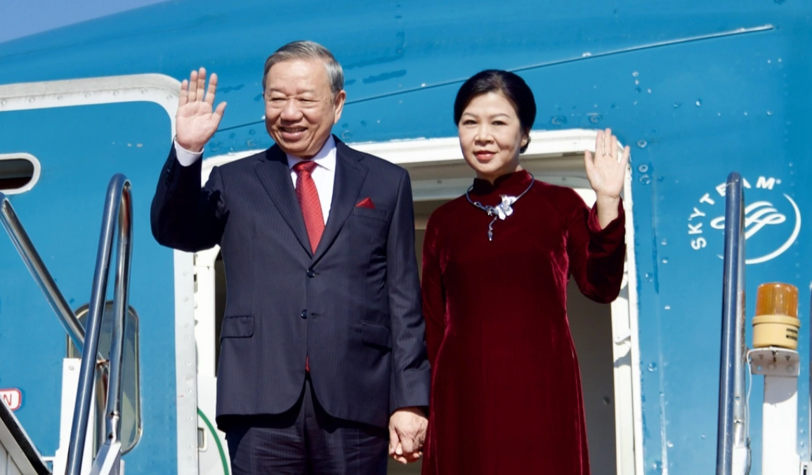 Sáng nay 1/12 theo giờ địa phương, Tổng Bí thư Tô Lâm cùng Phu nhân và đoàn đại biểu cấp cao nước ta đã tới sân bay quốc tế Wattay, Thủ đô Vientiane, bắt đầu các hoạt động trong khuôn khổ chương trình thăm Cấp Nhà nước tới Lào, dự Lễ kỷ niệm 50 năm ngày Quốc khánh Lào và đồng chủ trì Cuộc gặp cấp cao giữa Đảng Cộng sản Việt Nam và Đảng Nhân dân Cách mạng Lào.