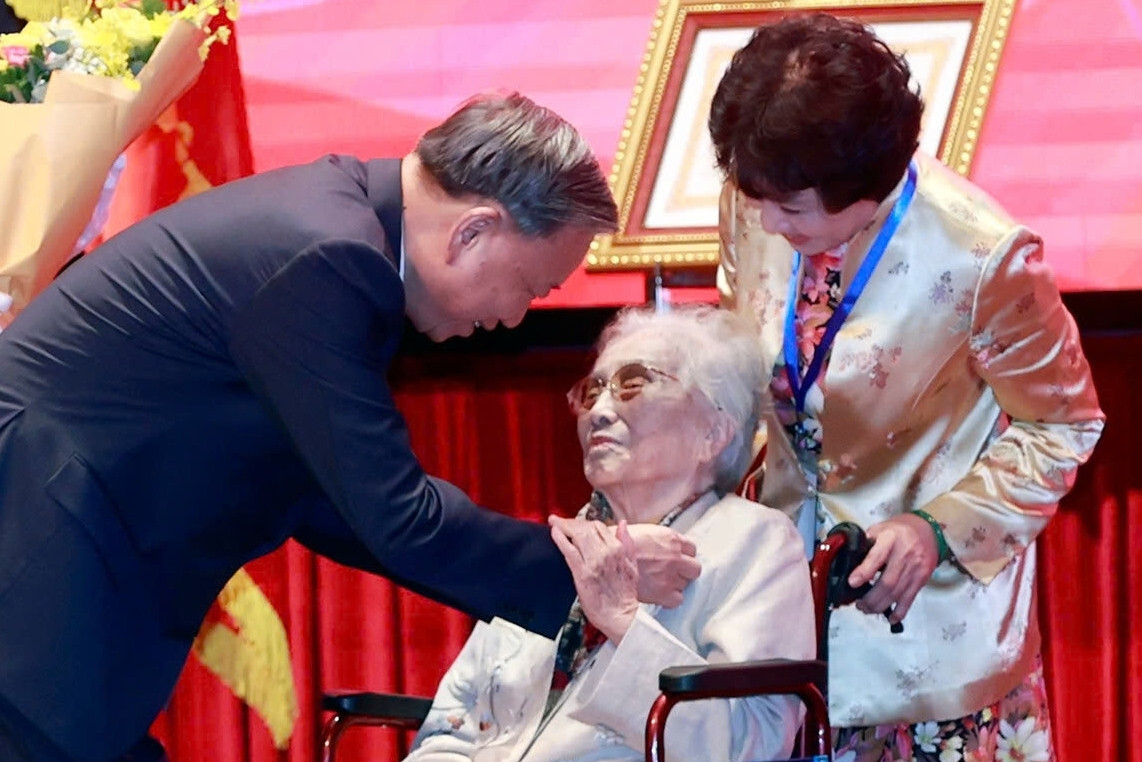 Sáng 25/8, thay mặt Đảng, Nhà nước, Tổng Bí thư Tô Lâm trân trọng trao danh hiệu Anh hùng Lao động cho nguyên Phó Chủ tịch nước Nguyễn Thị Bình.