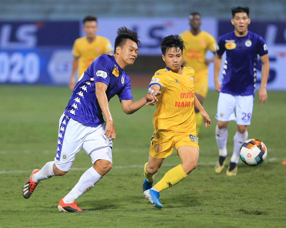 Các phóng viên tác nghiệp phải đo thân nhiệt tại vòng 1 V-League 2020.