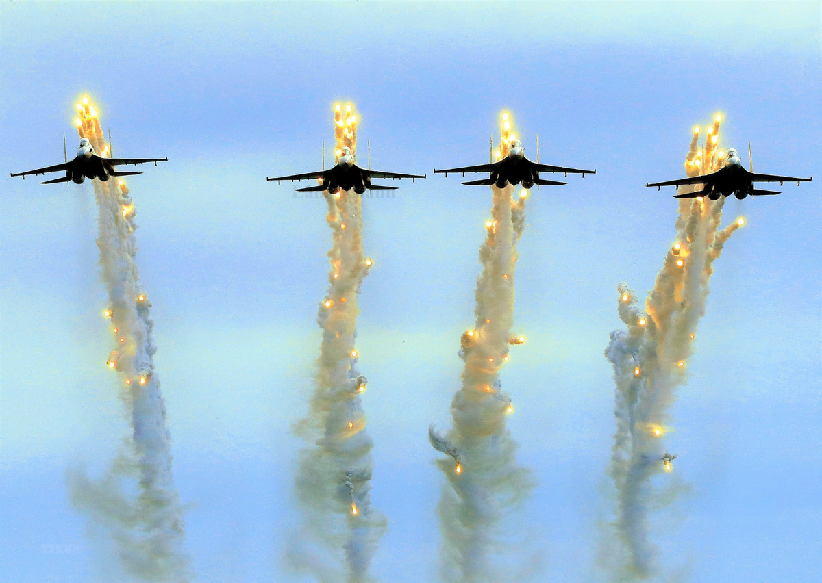 Màn trình diễn của phi đội Su30 MK. (Ảnh: Lâm Khánh/TTXVN)