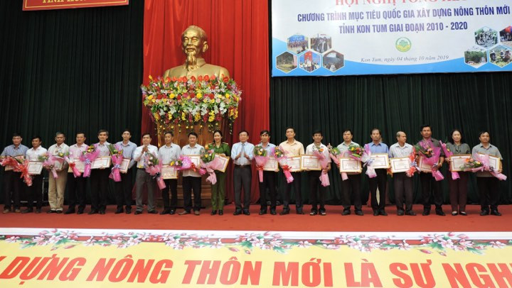 Tại Hội nghị Chủ tịch UBND tỉnh Kon Tum đã tặng Bằng khen cho 18 tập thể và 23 cá nhân có thành tích xuất sắc trong Phong trào thi đua “Kon Tum chung sức xây dựng NTM” giai đoạn 2010 – 2020. Bên lề Hội nghị, Ban chỉ đạo chương trình mục tiêu Quốc gia xây dựng NTM tỉnh đã tổ chức các gian hàng trưng bày, giới thiệu sản phẩm nông nghiệp đặc trưng của 10 huyện, thành phố.
