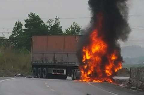| Đầu xe container bốc cháy dữ dội - Ảnh FB |