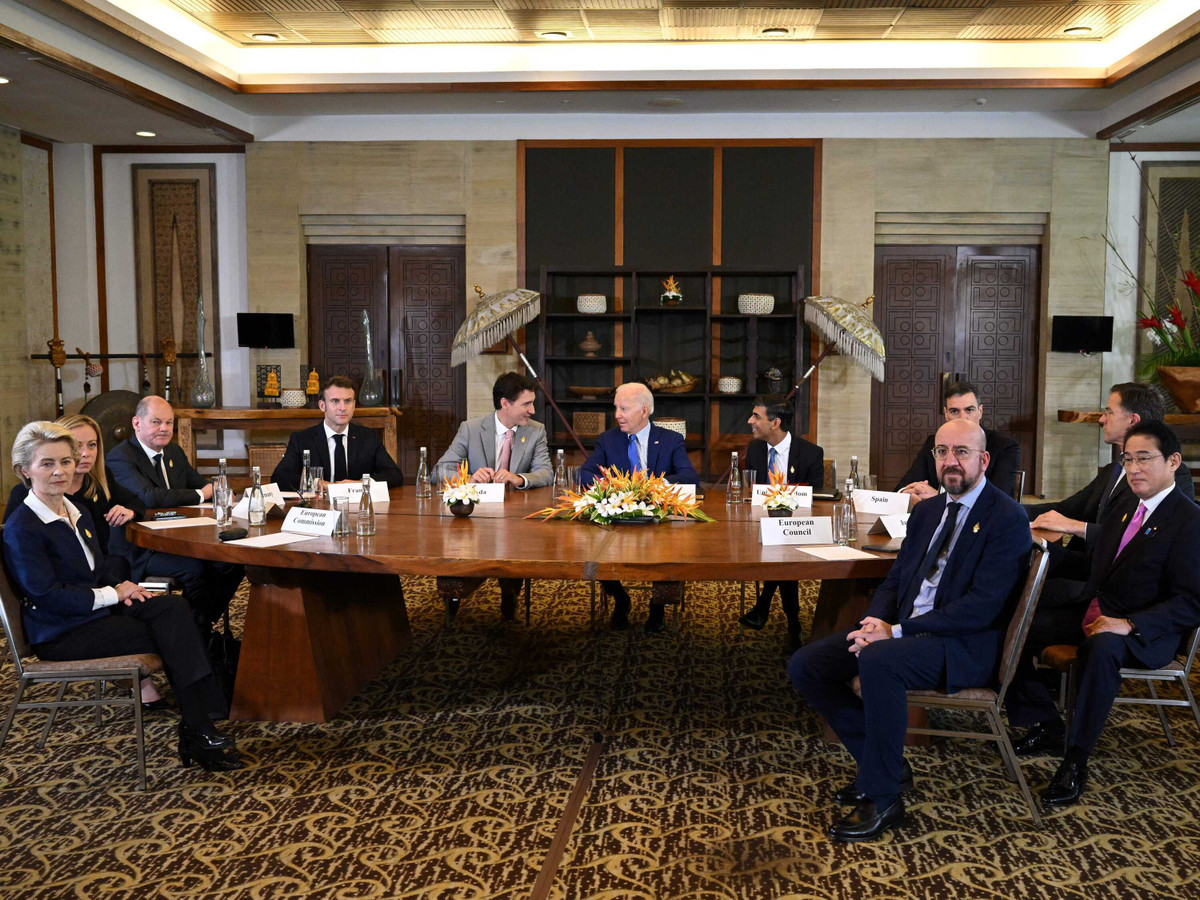 Các nhà lãnh đạo tham dự cuộc họp gồm Tổng thống Mỹ Joe Biden, Thủ tướng Đức Olaf Scholz, Thủ tướng Canada Justin Trudeau, Tổng thống Pháp Emmanuel Macron, Thủ tướng Italy Giorgia Meloni, Thủ tướng Nhật Bản Kishida Fumio, Thủ tướng Anh Rishi Sunak, Thủ tướng Tây Ban Nha Pedro Sanchez, Thủ tướng Hà Lan Mark Rutte, Chủ tịch Ủy ban châu Âu Ursula von der Leyen và Chủ tịch Hội đồng châu  Charles Michel.