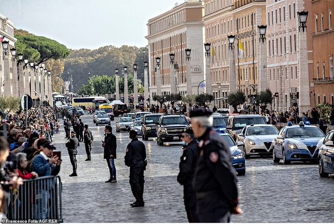 Theo Daily Mail, Tổng thống Biden đến thủ đô Rome trên chiếc Air Force 1 (Không lực Một) vào ngày 28-10. Các máy bay phản lực quân sự riêng biệt được sử dụng để vận chuyển chiếc chuyên xa The Beast (Quái thú) và trực thăng Marine One của tổng thống cùng nhiều nhân viên an ninh.