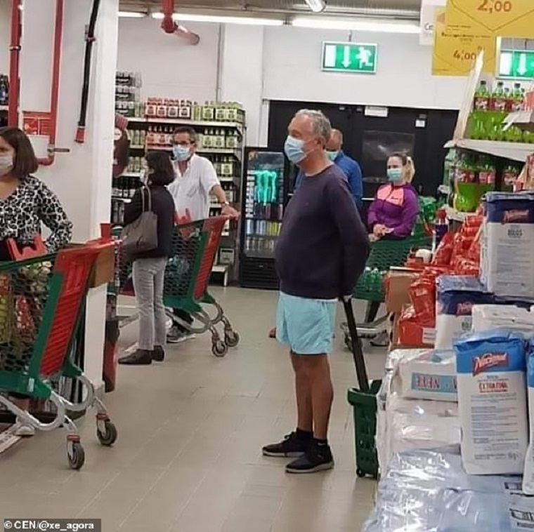 Trong bức ảnh, ông de Sous không đeo khẩu trang, kéo theo giỏ hàng và tuân thủ giãn cách xã hội khi chờ tới lượt thanh toán. Không có bất cứ cận vệ nào đi cùng ông và nhà lãnh đạo Bồ Đào Nha cũng không nhận được bất cứ đặc quyền nào.