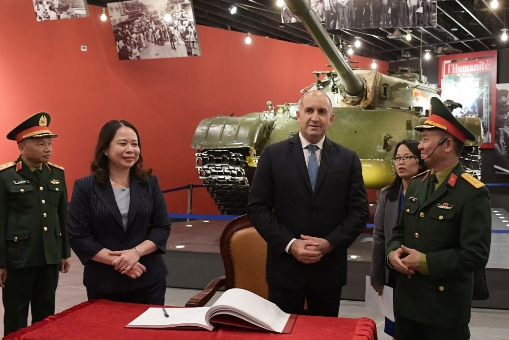 Tổng thống Rumen Radev cùng đoàn đại biểu cấp cao Bulgaria bày tỏ ấn tượng với không gian trưng bày và những hiện vật giá trị tại Bảo tàng Lịch sử Quân sự Việt Nam; truyền thống dựng nước và giữ nước của dân tộc Việt Nam; lịch sử hào hùng của Quân đội nhân dân Việt Nam.