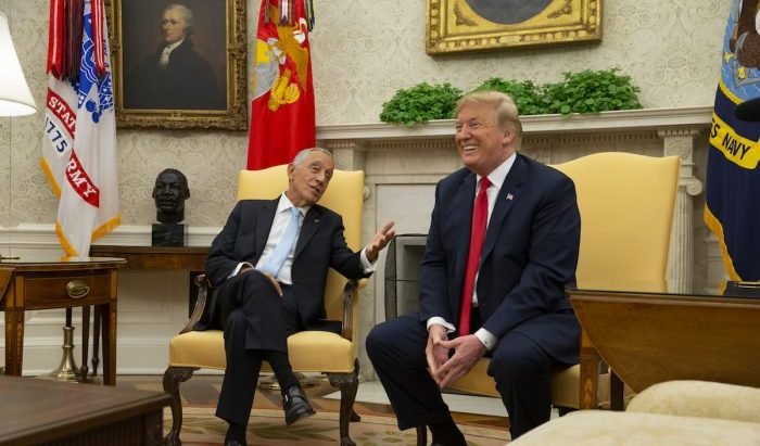 Tổng thống Trump trò chuyện cùng ông Rebelo de Sousa tại Nhà Trắng. (Ảnh: Getty)