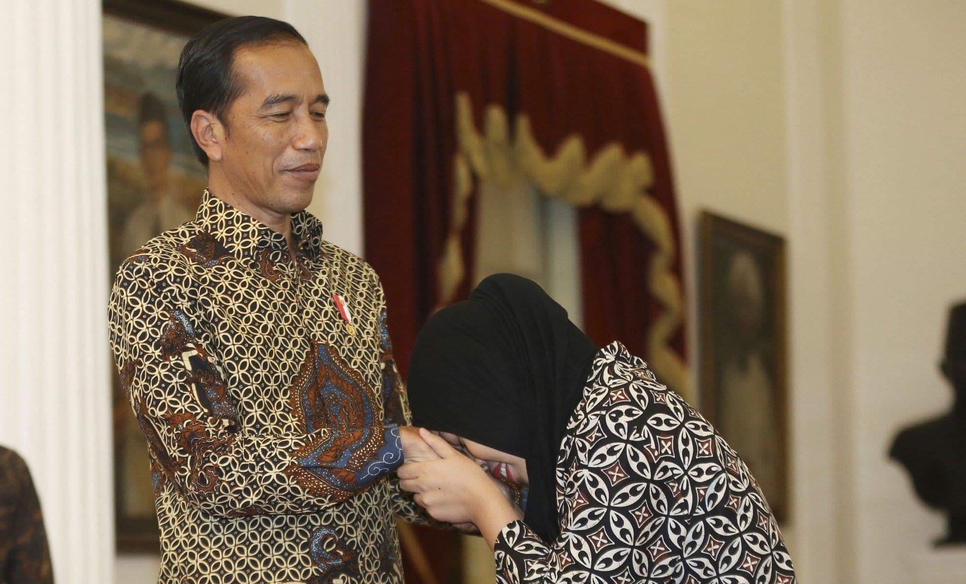 Tại dinh tổng thống, ông Joko Widodo đón Siti Aisyah, người từng là nghi phạm trong vụ sát hại người nghi là Kim Jong Nam, chào mừng cô trở về Indonesia ngày 12/3.