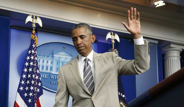 | Tổng thống Obama trong bộ âu phục màu be sáng |