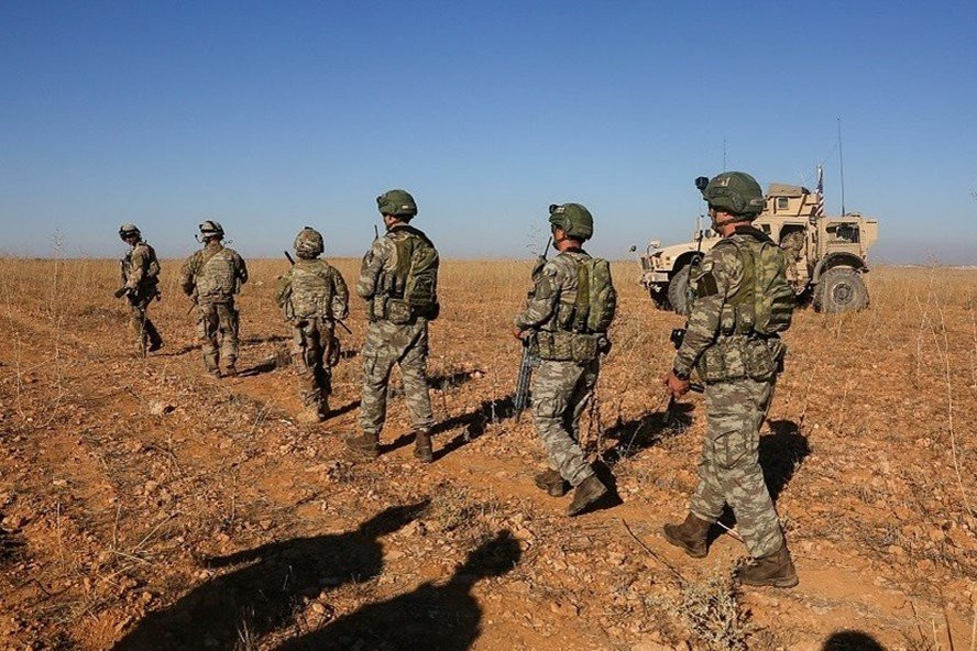 Binh lính Mỹ và Thổ Nhĩ Kỳ tuần tra chung bên ngoài khu vực Manbij, Syria. (Ảnh: Reuters)