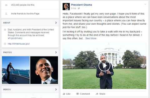 Trước đó ông Barack Obama cũng có một trang Fanpage với hơn 45 triệu người theo dõi, thế nhưng đây là một trang Facebook mang tính cá nhân hơn của vị tổng thống này.