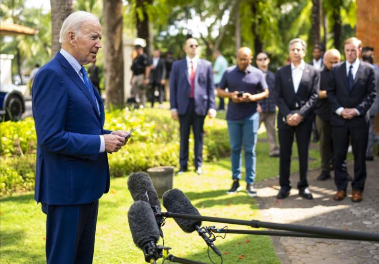 Tổng thống Mỹ Joe Biden trong cuộc họp bên thềm Hội nghị thượng đỉnh G20 sau khi có điều tra sơ bộ vụ nổ nghi do tên lửa ở Ba Lan. (Ảnh: Reuters)