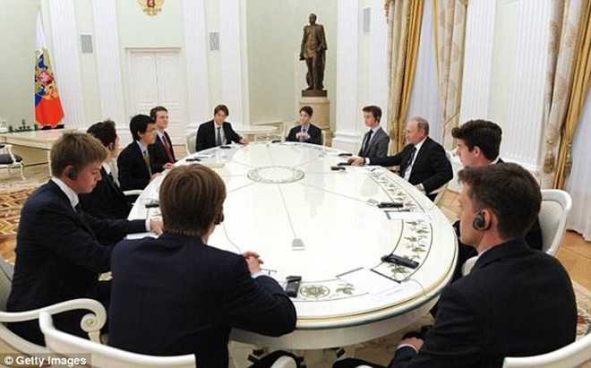 11 nam sinh trò chuyện cùng Tổng thống Putin tại Điện Kremlin. Ảnh: Getty Images.