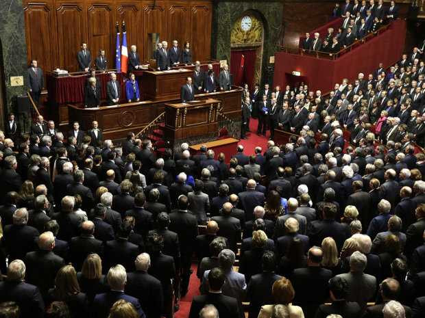 | Tổng thống Pháp Francois Hollande dành một phút mặc niệm trước khi phát biểu tại cung điện Versailles ngày 16/11 |