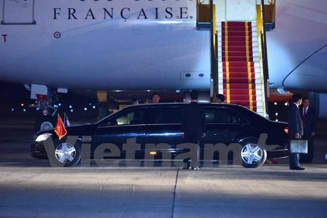 Tổng thống Pháp Francois Hollande đã đặt chân xuống Sân bay Quốc tế Nội Bài. (Ảnh: PV/Vietnam+)