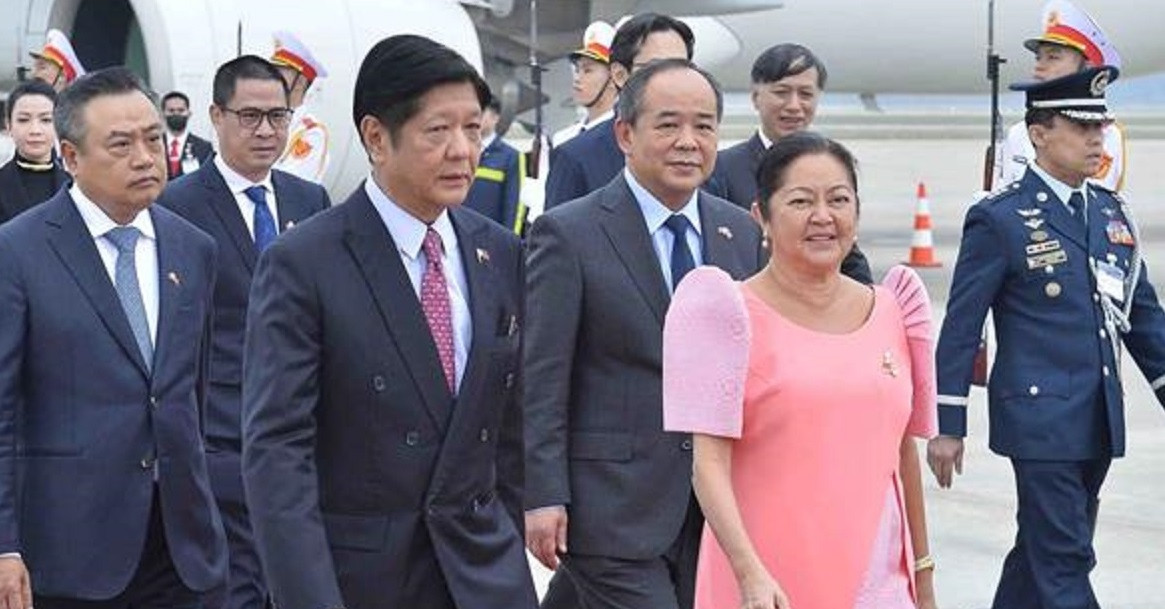Tổng thống Philippines Ferdinand Romualdez Marcos Jr. và Phu nhân đến Sân bay quốc tế Nội Bài, Hà Nội. Ảnh: Minh Đức/TTXVN