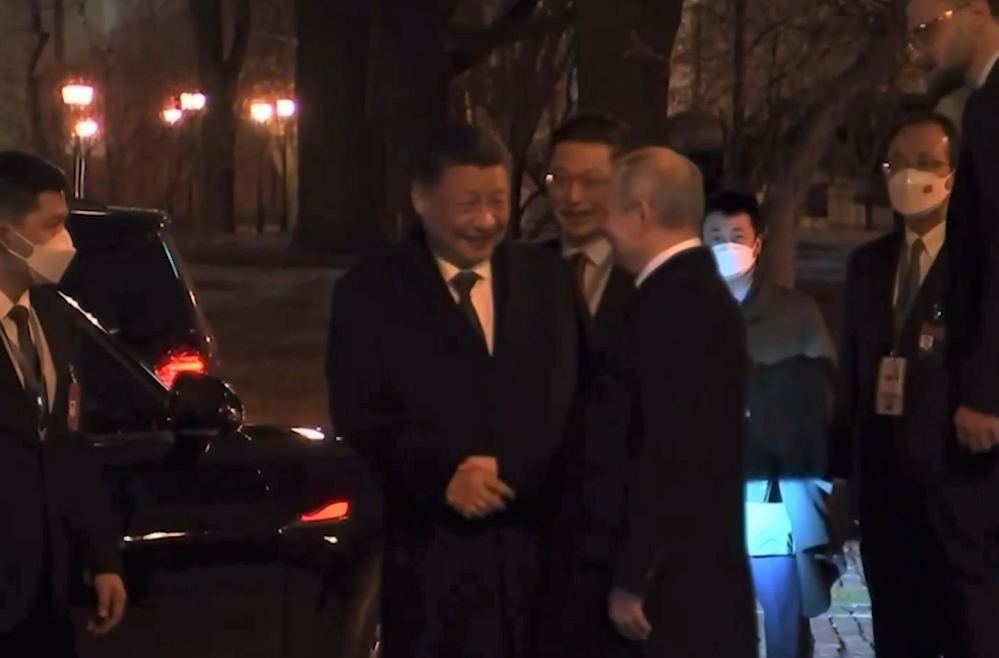 Tổng thống Putin tiễn Chủ tịch Tập Cận Bình ra xe sau cuộc gặp kéo dài 4,5 tiếng. (Nguồn: Kênh 1)