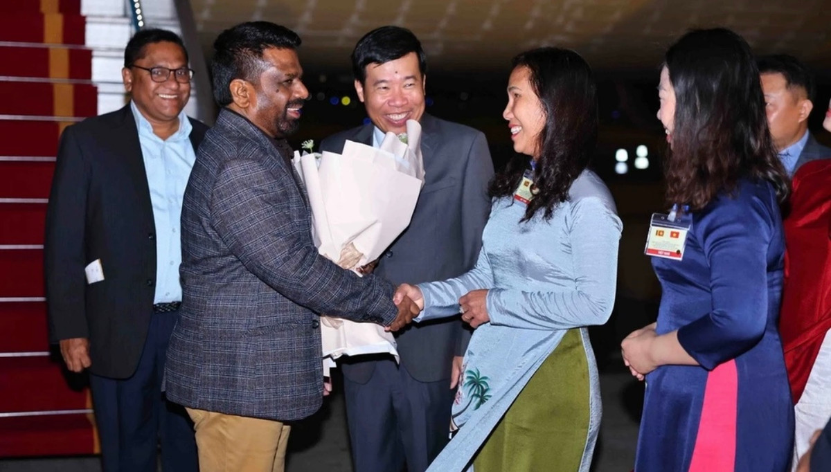 Đón Tổng thống Anura Kumara Dissanayaka và Đoàn tại sân bay quốc tế Nội Bài có: Thứ trưởng Bộ Ngoại giao Nguyễn Mạnh Cường; Thứ trưởng Bộ Dân tộc và Tôn giáo Nông Thị Hà; Đại sứ Việt Nam tại Sri Lanka Trịnh Thị Tâm; Đại sứ Sri Lanka tại Việt Nam Perera Wewala Appuhamillage Udam Poshitha.