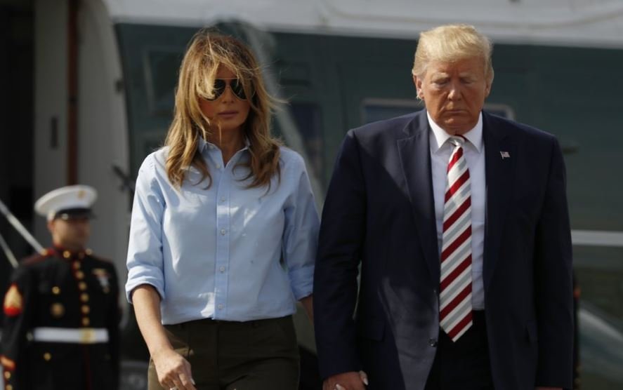 Tổng thống Donald Trump và đệ nhất phu nhân Melania Trump, đi về phía giới truyền thông trước khi phát biểu ngày 4/8/2019. (Ảnh: AP)