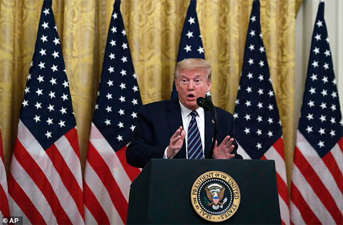 Tại cuộc họp báo 30/4, tổng thống Trump tuyên bố muốn sử dụng đòn thuế quan với hàng nghìn tỷ USD hàng hóa từ Trung Quốc để trả đũa. (Ảnh: AP)