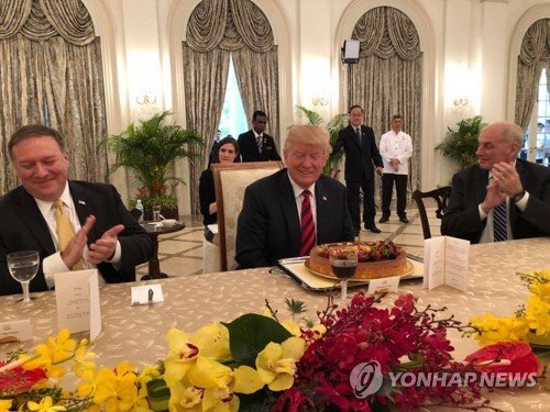 Tổng thống Trump được tổ chức sinh nhật sớm ở Singapore. (Ảnh: Yonhap)
