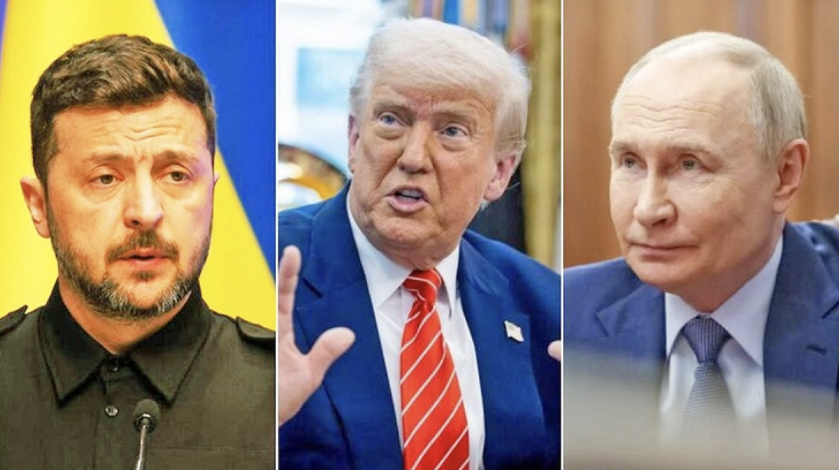 Tổng thống Ukraine Volodymyr Zelensky (trái), Tổng thống Mỹ Donald Trump (giữa) và Tổng thống Nga Vladimir Putin (phải). (Ảnh: AFP, Bloomberg, EPA-EFE)