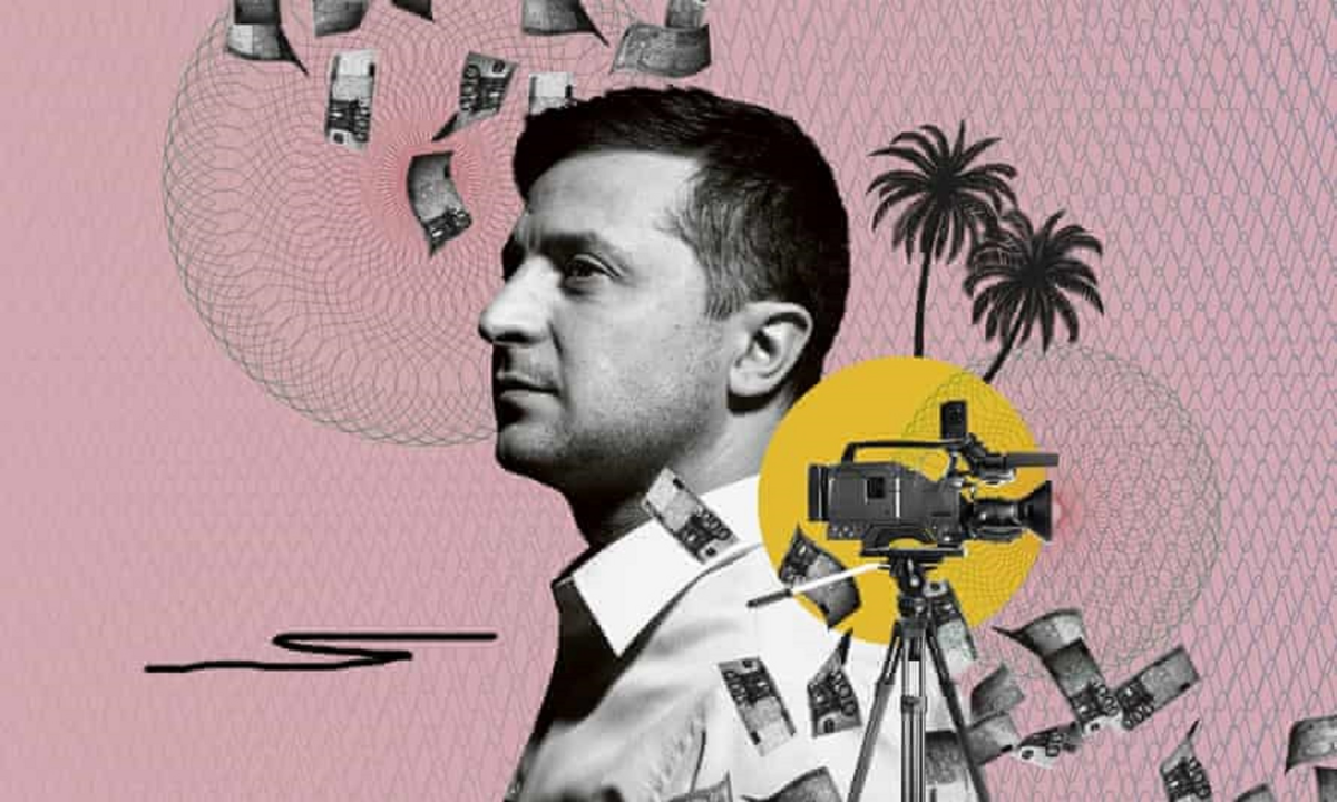 Tổng thống Ukraine Volodymyr Zelensky xuất hiện trong "hồ sơ Pandora". (Đồ họa: The Guardian)