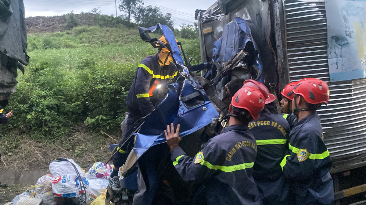 Vụ tai nạn khiến anh K. và T. tử vong tại chỗ, thi thể kẹt trên cabin xe. Tại hiện trường, đầu xe ô tô tải chở đá tinh khiết bị hư hỏng nặng.