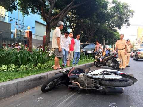 Vụ tai nạn xảy ra vào khoảng 16h30' ngày 26/3, ngay góc giao lộ giao lộ Điện Biên Phủ - Mạc Đĩnh Chi (Q.1, TP.HCM).