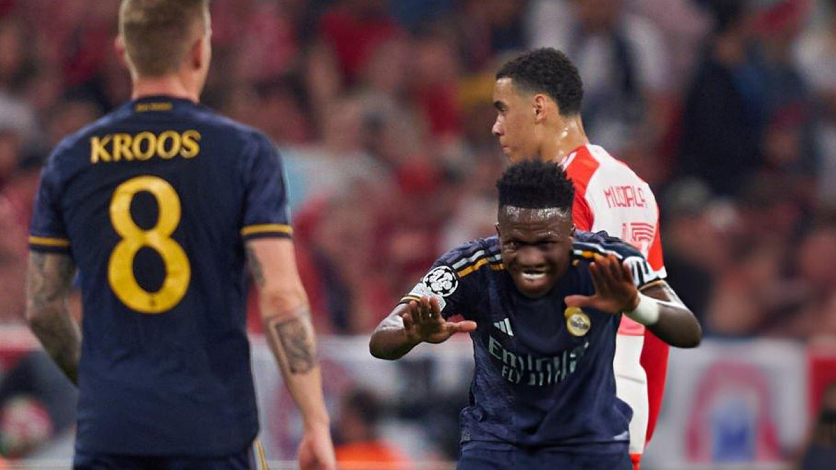 Trong tình huống diễn ra ở phút 24, Toni Kroos ra dấu cho Vinicius Jr chạy chỗ, trước khi thực hiện pha chọc khe từ giữa sân, "xé toang" hàng thủ Bayern Munich. Nhiệm vụ của Vinicius chỉ là đón bóng rồi thực hiện cú đặt lòng ở góc sút rộng mở để ghi bàn mở tỷ số.