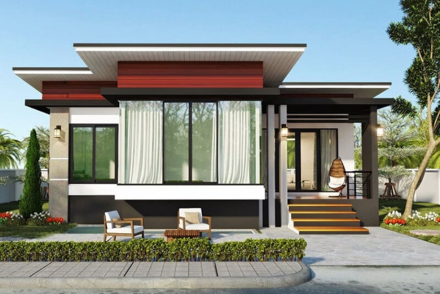 Thiết kế mái thái mang vẻ truyền thống kết hợp chất liệu kính giúp không gian sống trở nên hiện đại, tinh tế hơn. (Ảnh: Noithattugia)