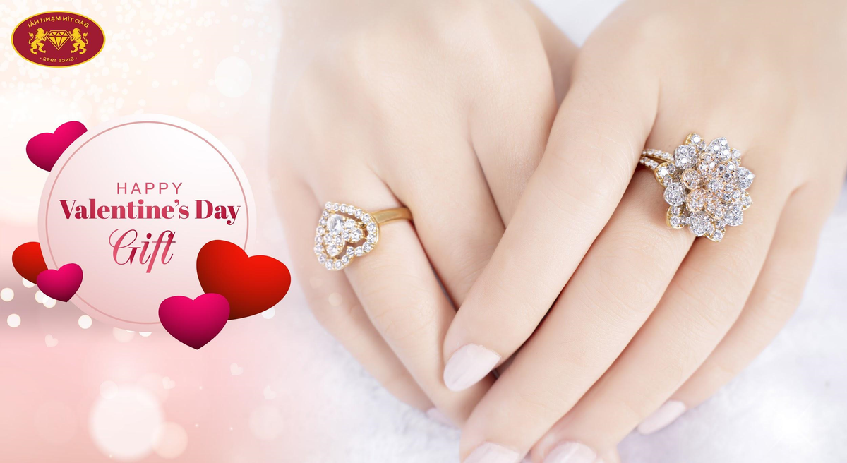 Nhẫn luôn luôn là biểu tượng trong tình yêu. Tặng nhẫn thể hiện trái tim của bạn luôn dành cho người yêu của mình. Khi bạn đeo một chiếc nhẫn lên tay cô ấy, cả hai có thể thầm hiểu rằng đó như là một vật đính ước, hẹn thề thắt chặt tình yêu của đôi lứa. Một chiếc nhẫn đính đá hình hoa hoặc hình trái tim được làm từ chất liệu vàng 14K, 18K có thể là sự lựa chọn quà tặng phù hợp trong ngày Valentine.
