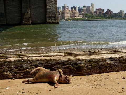 Quái vật sông Đông đã được tìm thấy ở Manhattan dưới cầu Brooklyn. Bức hình về đống thịt cồng kềnh của nó khiến người xem không thể nhận ra đây là loài động vật nào. Đây liệu có phải là một con chuột khổng lồ hay là một vật thí nghiệm trốn thoát?