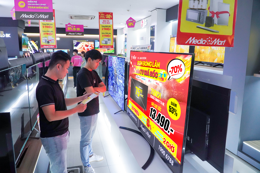 Dạo qua các siêu thị điện máy có thể thấy không khí mua sắm cuối năm đã bắt đầu nhộn nhịp hơn. Cùng với đó mùa giải AFC Asian Cup 2024 khởi tranh cũng góp phần khiến nhu cầu mua sắm tivi ngày càng cao. Nhiều khách hàng chọn sắm tivi trước tết sớm để xem bóng đá đồng thời tranh thủ thời điểm này có nhiều ưu đãi hấp dẫn.