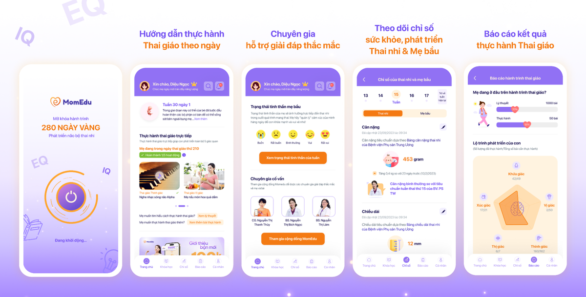 MomEdu là ứng dụng dành riêng cho mẹ bầu, giúp ba mẹ theo dõi thai kỳ của mình tiện lợi và chính xác nhất. Ngoài ra, app có lộ trình Thai giáo theo ngày giúp hỗ trợ phát triển não bộ thai nhi từ trong bụng mẹ.