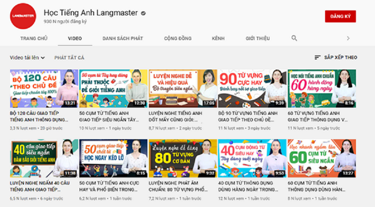 Đây là một trong những đơn vị đầu tiên tại Việt Nam khai thác và cung cấp bài học miễn phí trên các nền tảng trực tuyến như Youtube từ năm 2012. Cụ thể, kênh Youtube của Langmaster mang đến các video hội tụ đầy đủ, toàn diện các kỹ năng, kiến thức chuyên sâu trong mảng tiếng Anh giao tiếp, giúp người học luyện tập từ con số 0. Hiện nay, “Học tiếng Anh Langmaster” sở hữu con số gần 1 triệu lượt follow trên kênh của mình.