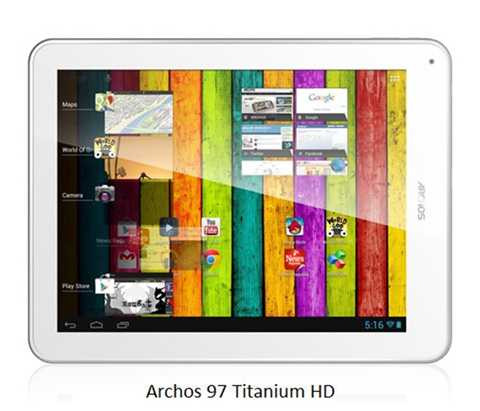 Archos 97 Platinum sở hữu màn hình giống với các thiết bị iOS: 9,7 inch IPS với độ phân giải 2048 x 1536 pixel và mật độ điểm ảnh đạt264 PPI.
