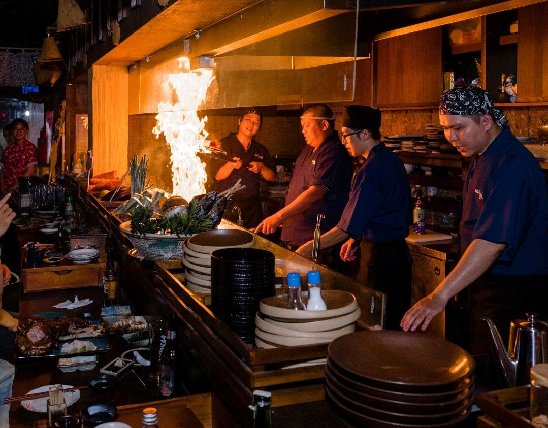 Nhà hàng Shamoji Robata Yaki tái hiện sống động không khí nhộn nhịp của những làng chài Nhật Bản. Hình ảnh ngư dân bận rộn bên bếp lửa Robata Yaki, họ chuyền tay nhau những món hải sản tươi ngon qua chiếc muôi Shamoji "khổng lồ", đưa thực khách đến với những trải nghiệm ẩm thực vô cùng độc đáo.