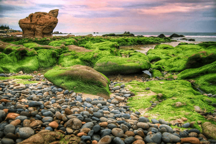 Là một trong số những địa điểm du lịch Bình Thuận có cảnh quan đẹp nhất, bãi đá còn có rất nhiều những tảng đá lớn mục đầy rêu xanh. Thông thường thì độ khoảng tháng 3 sẽ là thời điểm rêu mọc phủ đầy đá, tạo nên một phong cảnh đẹp tuyệt trần khi kết hợp chan hòa cùng với ánh nắng tự nhiên.