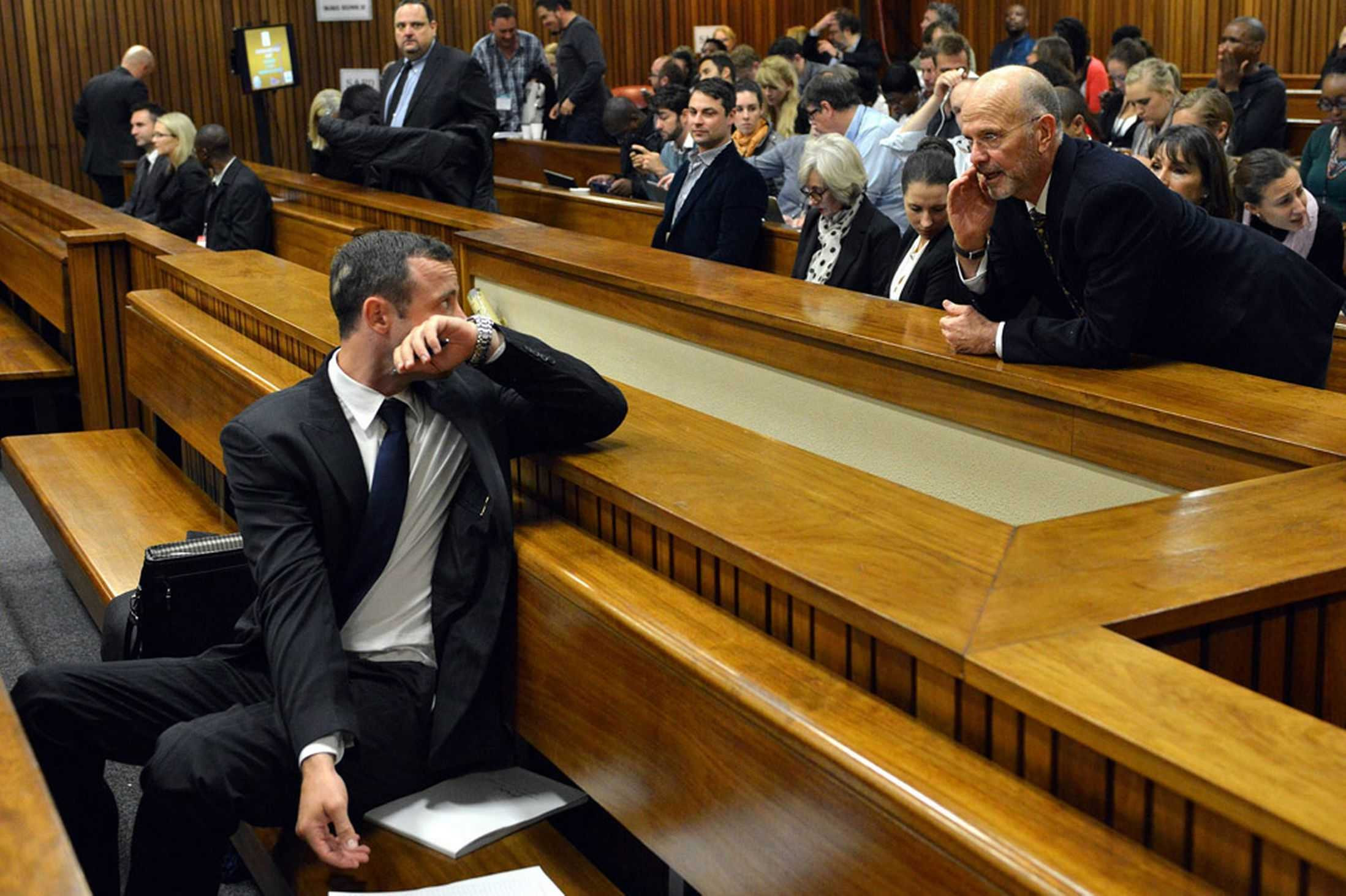 Oscar Pistorius- huyền thoại thể thao Nam Phi- bước vào phiên tòa phúc thẩm xử vụ án anh bắn chết cô bạn gái Reeva Steenkamp vào ngày Valentine năm ngoái
