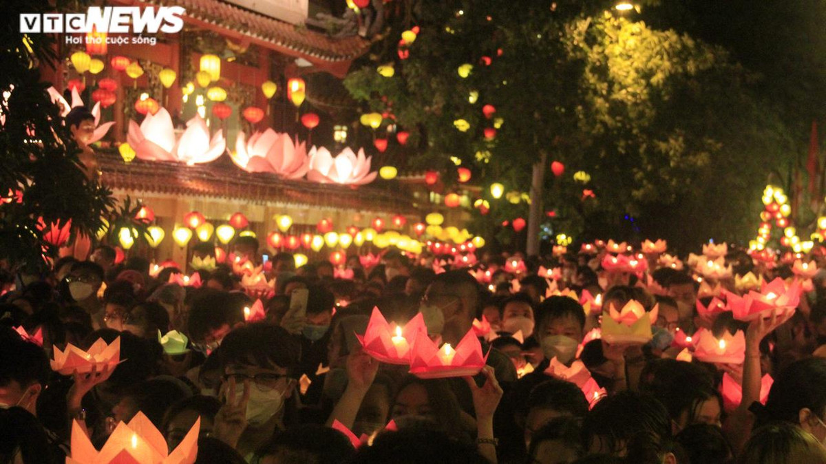 Tối 12/5, rất đông người dân có mặt tại chùa Pháp Hoa (quận 3, TP.HCM) để tham gia nghi thức thả hoa đăng và cầu nguyện những điều tốt lành nhân dịp lễ Phật đản 2022.